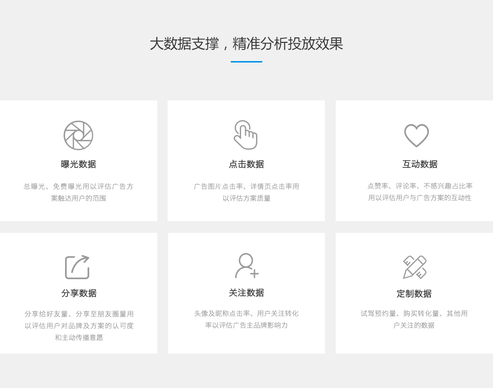 多條廣告同時在線時,系統將根據廣告質量分值智能分配曝光。(廣告質量分值,來自于用戶對廣告的贊、評論、“不感興趣”、分享、“查看詳情“等操作)