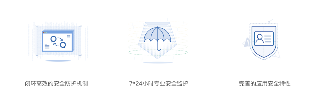 閉環高效的安全防治機制,7*24小時專業安全監護,完善的安全應用特性