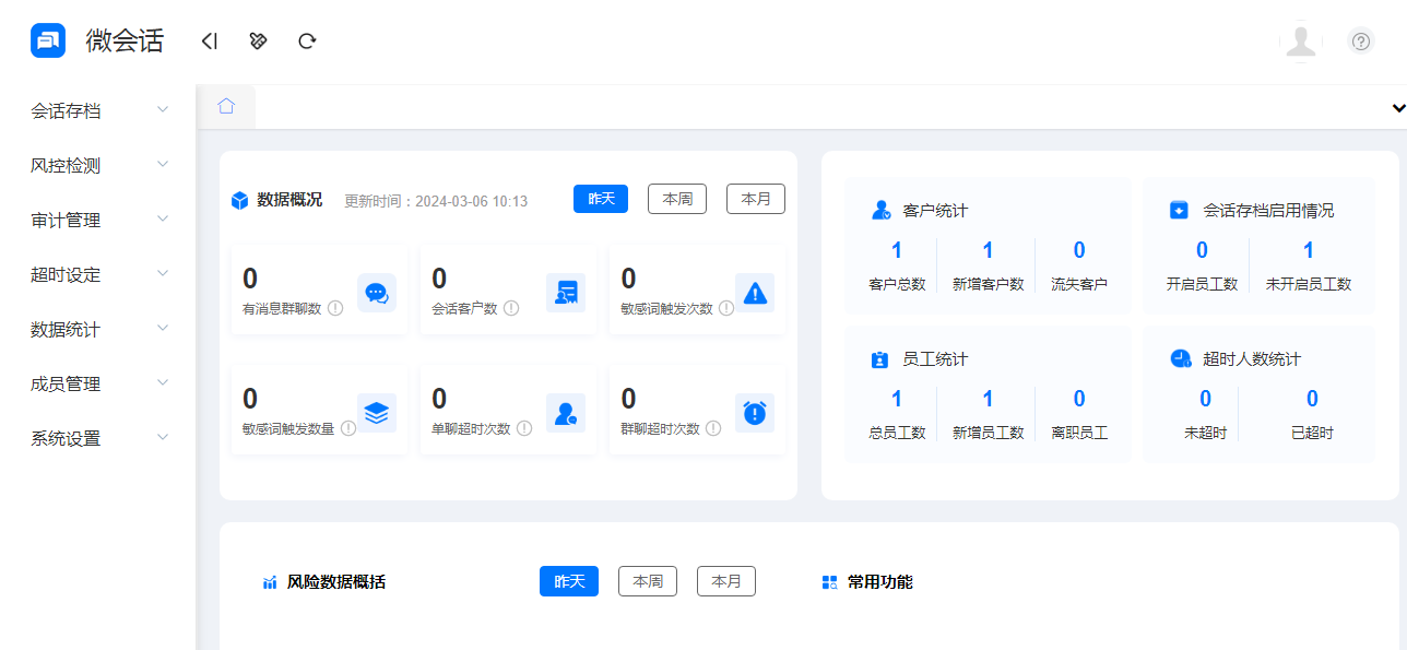 會話系統應用:基于企業微信API合規化存檔企業內部外部微信聊天內容的應用;通過記錄和保存?戶聊天記錄,將?戶在聊天應?程序中的對話內容存儲在云端或本地設備上;經用戶同意后,企業可獲取員工所有溝通內容并按要求合規存檔,覆蓋企業微信與微信、跨企業的企業微信、及企業內部溝通;并可以對關鍵詞匯、動作等進行統計、分析多場景應用