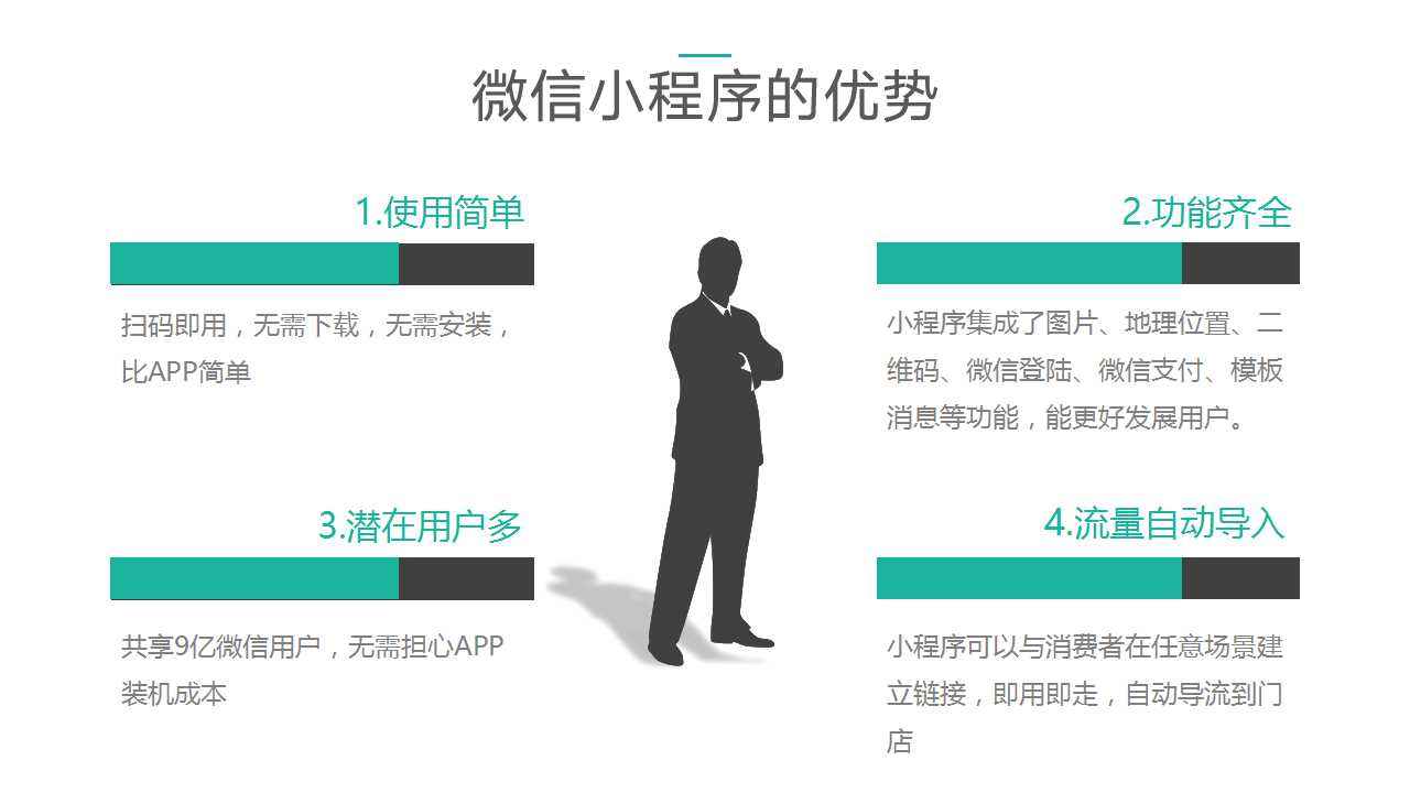 關于許多中小企業尤其是傳統企業而言,小程序的出現可以說是又一次擁抱移動互聯網,完成企業轉型的大好機遇。小程序背靠微信這個強大的流量池,具有如此龐大的活潑用戶群,可以說是企業引流的絕佳途徑。