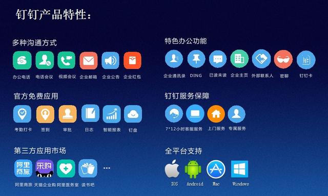 釘釘 是阿里巴巴第三代產品 是一款完全免費的數字化化管理工具 釘釘結合并完善了市面上大部分信息化軟件 解決企業溝通、上下班考勤、審批、日志、多方視頻會議、外勤人員簽到、企業云盤、企業郵箱等功能。推廣階段