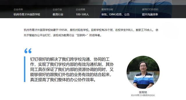杭州市育才外國語學校啟用由微必知部署釘釘將近兩年,已實現無紙化辦公及智慧校園建設。目前基于釘釘的校園運作模式,不但包含校務管理,還將家長納入,老師和家長的溝通實現無縫對接。