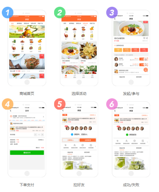 3、自動組團:顧客隨時自己發起拼團,湊夠人數自動成團;