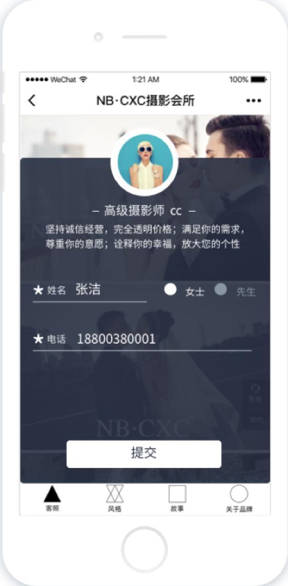 直觀明了展示婚慶企業不同類型的合作商品,例如婚紗、攝影、戒指、婚鞋、請柬、喜糖、鮮花、酒店等剛性配套商品,滿足客戶的不同需求,引導客戶進行配套性購買,提高婚慶企業利潤空間;預約功能更是滿足新時代人類對效率與速度的迫切性需求,節約消費者的時間,真正做到一站式解決客戶需求,提高用戶體驗。