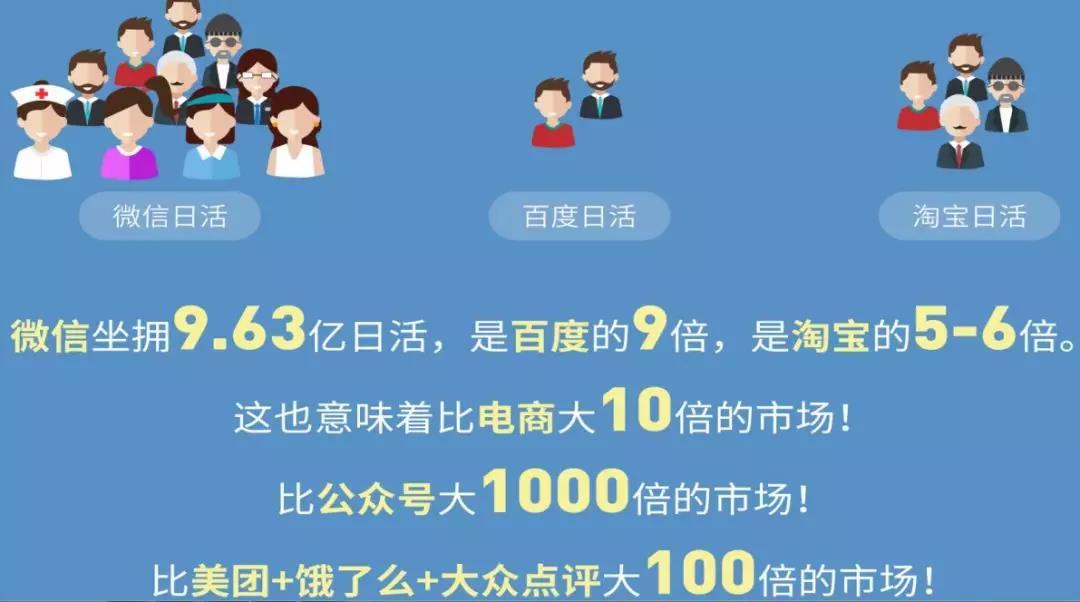 百度1億日活vs微信9億多日活;企業在百度里花費大量的人力去推廣或者競價推廣