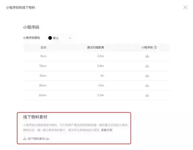 2、小程序碼和線下物料頁面下方,點擊“下載物料素材”就可以了