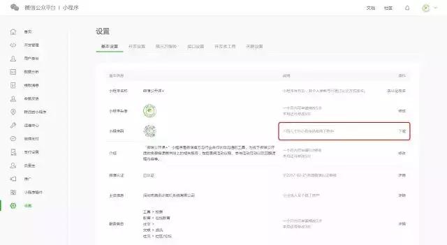 1、登錄小程序后臺,點擊小程序碼右邊的“下載”進入